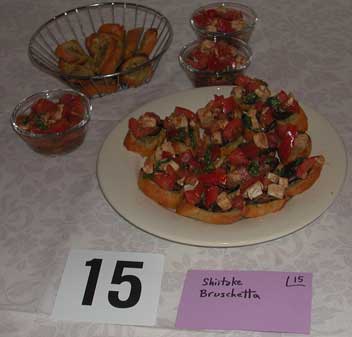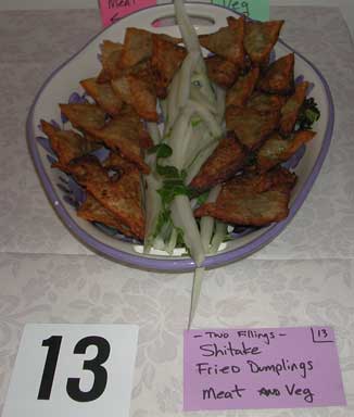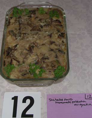 Shitake Mushroom Results Code Dish Chef Average 26 Crispy Shitake Mushroom Noodle Pancake Ian and Clara Krememic 17.857 25 Shitake Mushroom Ravioli Kat and Chris Polk 16.353 20 Shitake and Potato Napoleons Joe Denivo 16.250 24 Chocolate Raspberry Shitake Petit-Fours Dave Kemp 16.050 13 Two Fillings - Shitake Fried Dumplings David J. Cavuto 15.813 18 Shitake and Ricotta Patties with Tomato Sauce Scot Raff 15.571 15 Shitake Bruschetta Ray & Jason 15.278 23 Mushroom Moussed Mushrooms Jeremy & Cappy 15.077 16 Hot n' Sour Soup Scot Raff 14.733 19 Exotic Mushroom Bread Pudding with Sweet Red Pepper Sauce Joe Denivo 14.353 27 Homestyle Biscuits with Shitake Mushroom Gravy Ian and Clara Krememic 14.333 21 Shitake and Wild Mushroom Strudel with Cognac Cream Reduction Kat and Chris 14.176 14 Mushroom Medley Pie with Sauce Lea Popielinski 14.000 17 Wild Mushroom Polenta Josiah Hobson 13.500 10 Shitake Bread Pudding Chris Call 13.353 12 Shitake and Homemade Polenta au Gratin Marah Cavuto 13.294 11 Pasta with Blue Cheese and Shitake Mushrooms Jon and Lisa 12.000 22 Spring Stew Jen Fogle 11.071